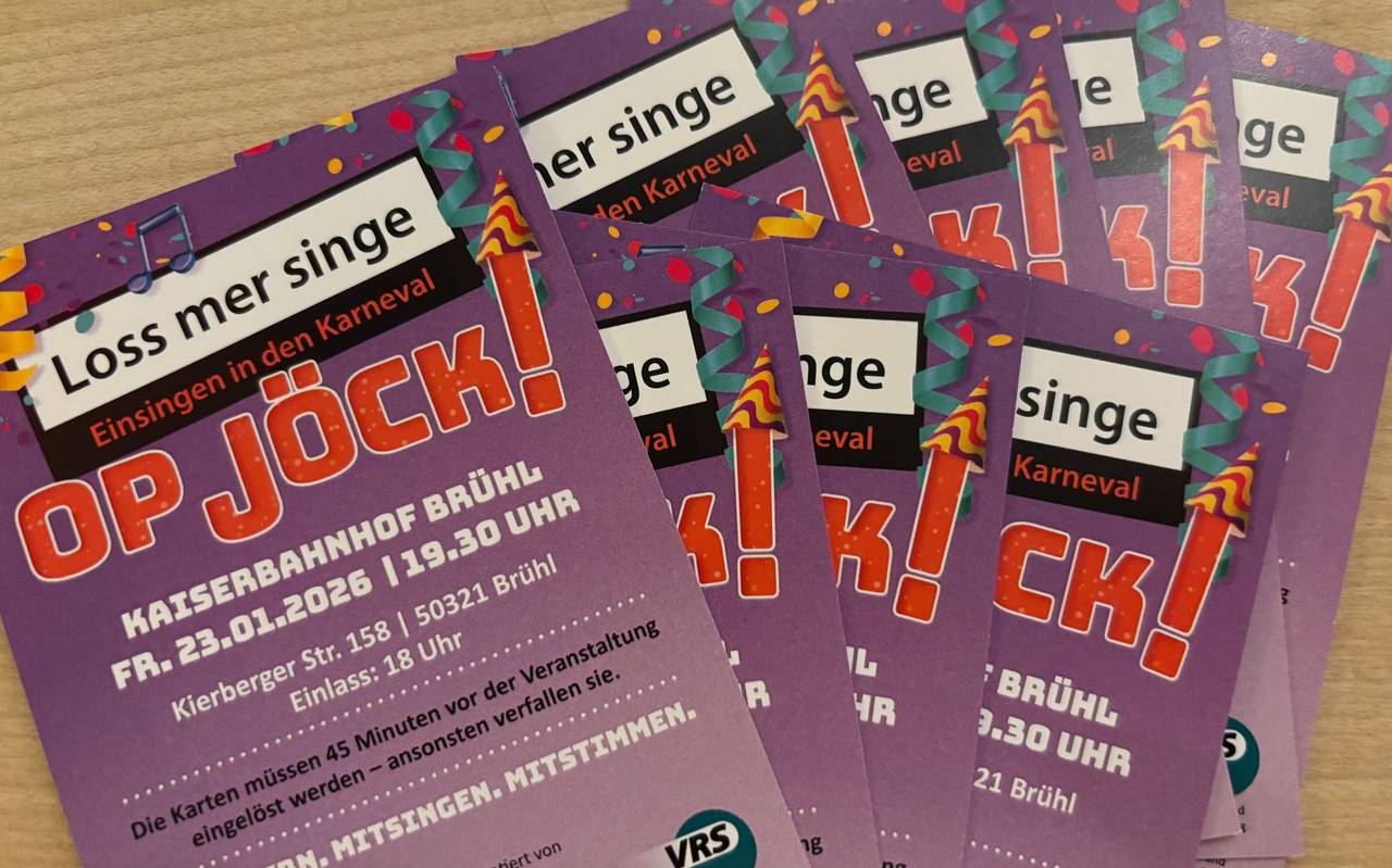Die Einsingabende von „Loss mer singe" op Jöck starten wieder und machen zwölfmal Station im VRS-Gebiet. Ab Donnerstag (11. Dezember) gibts die kostenlose Eintrittskarten, und die sind erfahrungsgemäß schnell weg.