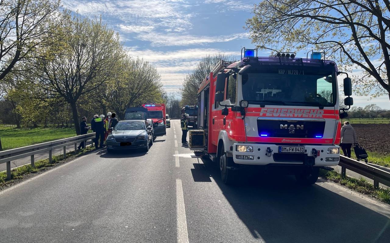 Als die Feuerwehr an der Unfallstelle eintraf, war bereits eine Person aus ihrem Auto herausgekommen. Ersthelfer kümmerten sich schon um sie. Die andere Person mussten die Einsatzkräfte mit technischem Gerät möglichst schonend aus dem Auto herausholen. Die beiden Verletzten kamen in Krankenhäuser. Laut der Polizei hatte der vorausfahrende Autofahrer stark abbremsen müssen, Zeugenaussagen zufolge soll die dahinter fahrende Autofahrerin ungebremst auf den vor ihr haltenden Wagen aufgefahren sein.