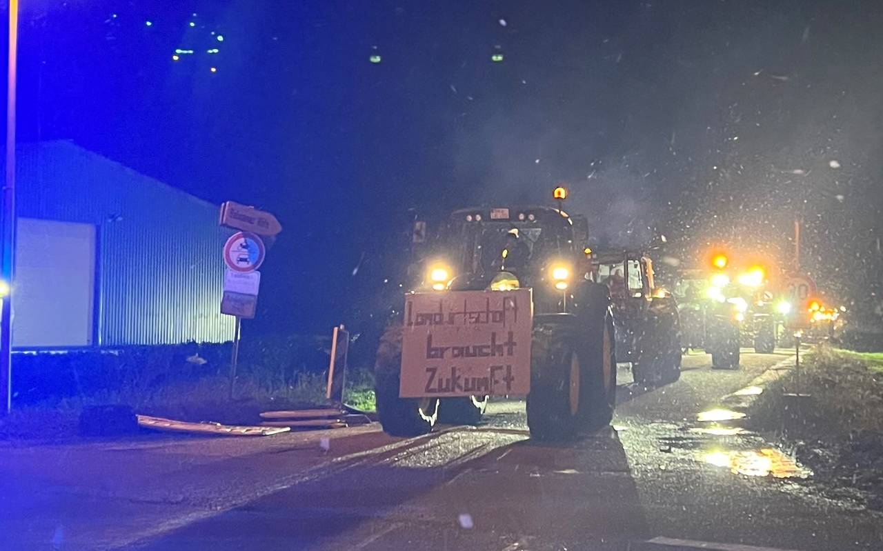 Rund 40 Trecker waren laut Polizei am Freitagmorgen im Bereich der Roentgenstraße unterwegs und haben die Lkw dort nicht durchfahren lassen. Bei dem Protest ging es aber nicht um den Wegfall von Bundeszuschüssen, sondern um die Vorgehensweisen des Handels. Die Bauern wollten unter anderem gegen Preisdumping und den klimaschädlichen Import von Waren kämpfen. Die Blockade am Gewerbegebiet ging von 4 Uhr bis um 9 Uhr, große Verkehrsbehinderungen gab es vor Ort aber kaum, sagt die Polizei.