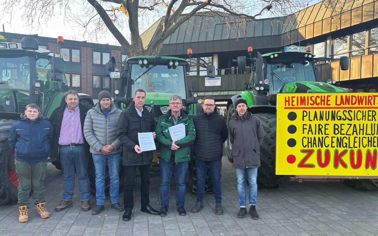 Eine Abordnung von Kerpener Landwirten hat heute vor dem Rathaus Station gemacht. Unter der Führung von Kreislandwirt Willi Winkelhag haben sie eine Petition an Bürgermeister Dieter Spürck übergeben.