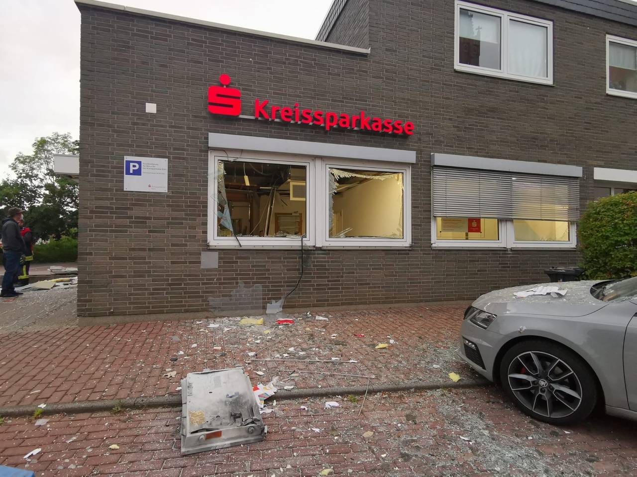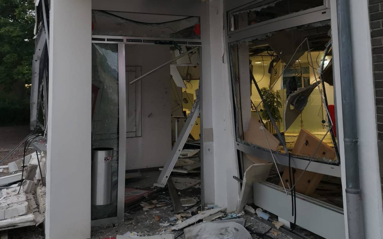 Die Polizei sucht nach nach Zeugen. Insgesamt sollen drei Täter an der Sprengung beteiligt sein. Zwei hätten sich in der Bank befunden, einer sei nach Zeugenaussagen den weißen Fluchtwagen gefahren. Ob die Täter Beute machen konnten ist noch unklar.