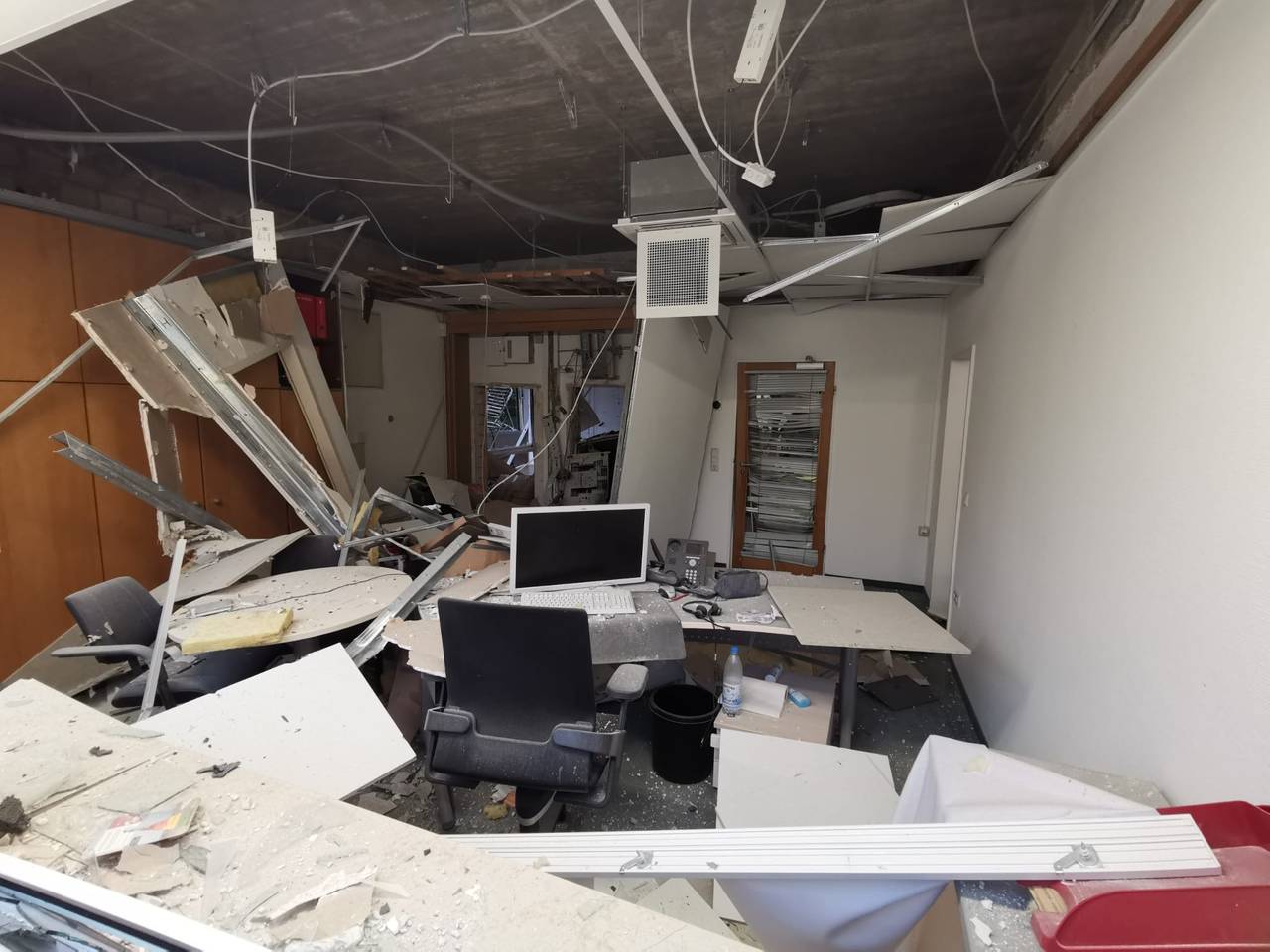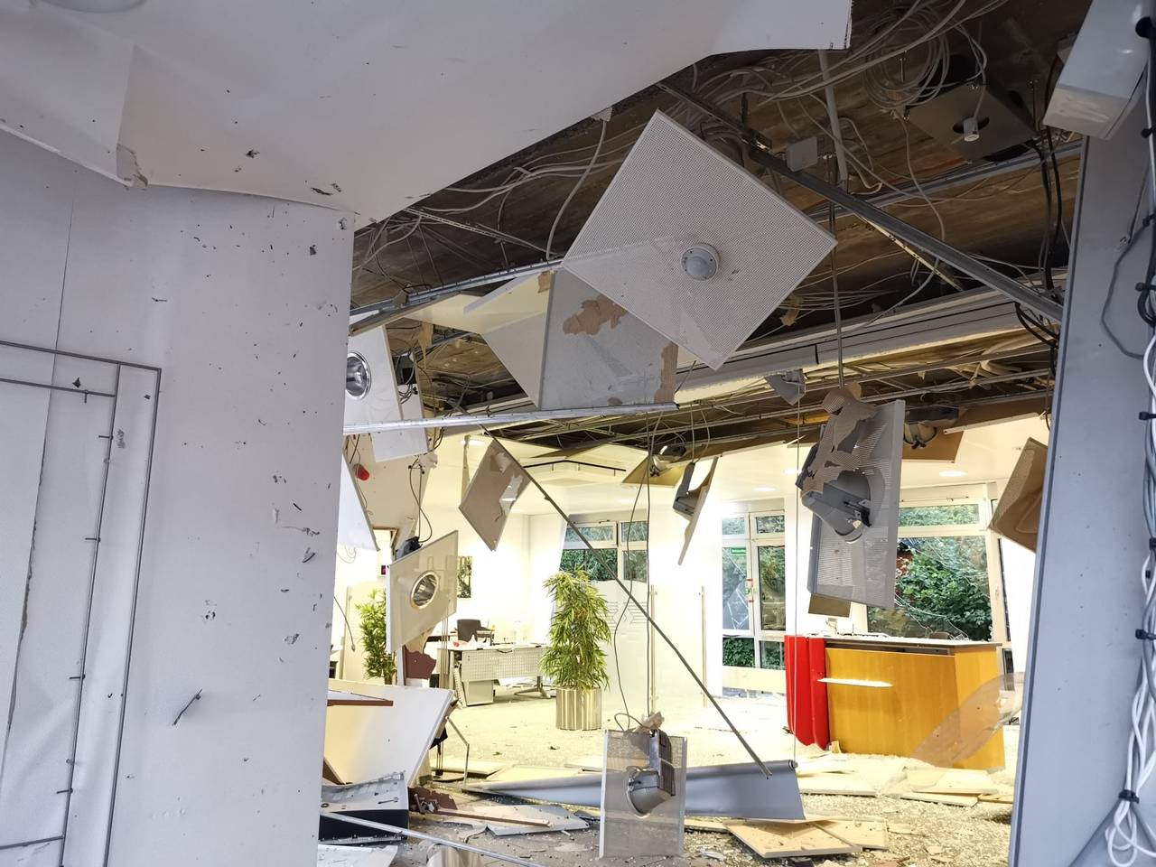 Unterdessen laufen an dem stark beschädigten Gebäude die Aufräumarbeiten. Nach Aussage des THW ist das Haus nicht einsturzgefährdet. Die Bewohner oberhalb der Bank können zurück in ihre Wohnungen. Auch die Fahrbahn ist wieder frei, nur ein kleiner Teil der Eichemstraße vor der Bank muss noch weiter gesperrt bleiben.