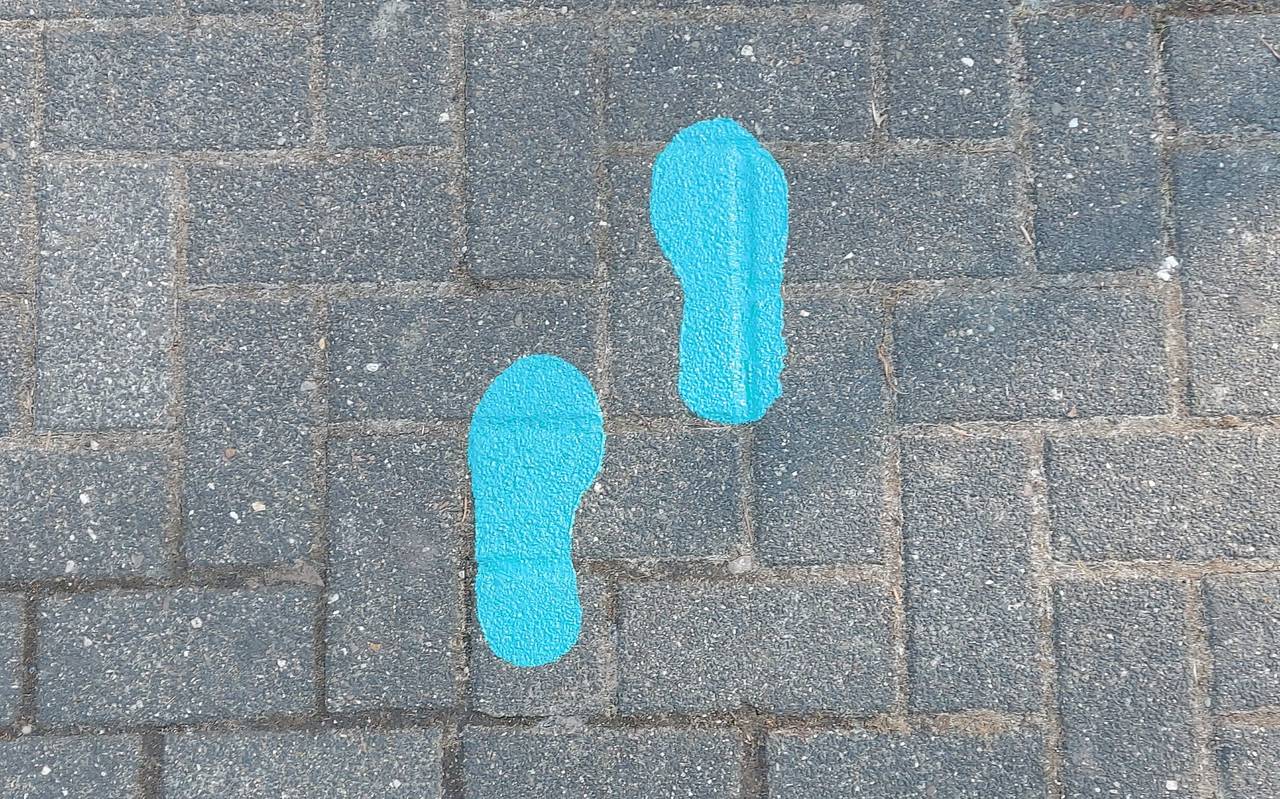 Die gut sichtbaren Fußabdrücke sollen den Kindern Orientierung geben. Gleichzeitig sollen sie andere Verkehrsteilnehmer darauf aufmerksam machen, dass dort viele Schulkinder unterwegs sind.