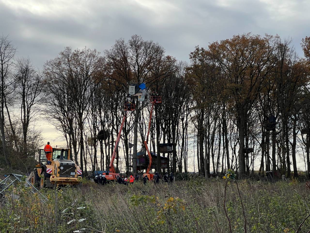 Schon seit Mitte Oktober steht die Räumung der Fläche im Raum, jetzt hat sich die Polizei offenbar zum Handeln entschlossen. RWE braucht den Bereich nach eigenen Angaben für die Stabilisierung der Tagebaugrube. Ein Teil des Wäldchens wurde schon Anfang des Jahres abgeholzt.