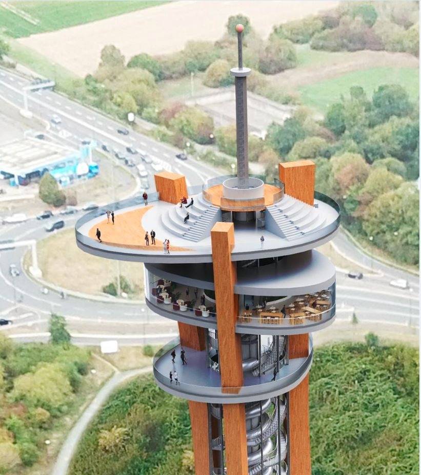 Jetzt hapert es bei der Finanzierung. Grund sind die gestiegenen Zinsen, wodurch die Banken mehr Eigenkapital einfordern. Bis zum Winter will Pieroth die Finanzierung aber geklärt haben. Sein Wunsch ist ein Baustart im Frühjahr. In eineinhalb Jahren Bauzeit soll dann nicht nur der 170 Meter hohe Holzturm entstehen, sondern auch erste Attraktionen. Angedacht sind drei Außenplattformen, ein gläserner Aufzug, eine 84 Meter lange Tunnelrutsche sowie Erlebnisgastronomie. In einem späteren Schritt sei auch eine Seilrutsche zur Kartbahn denkbar, so Pieroth.