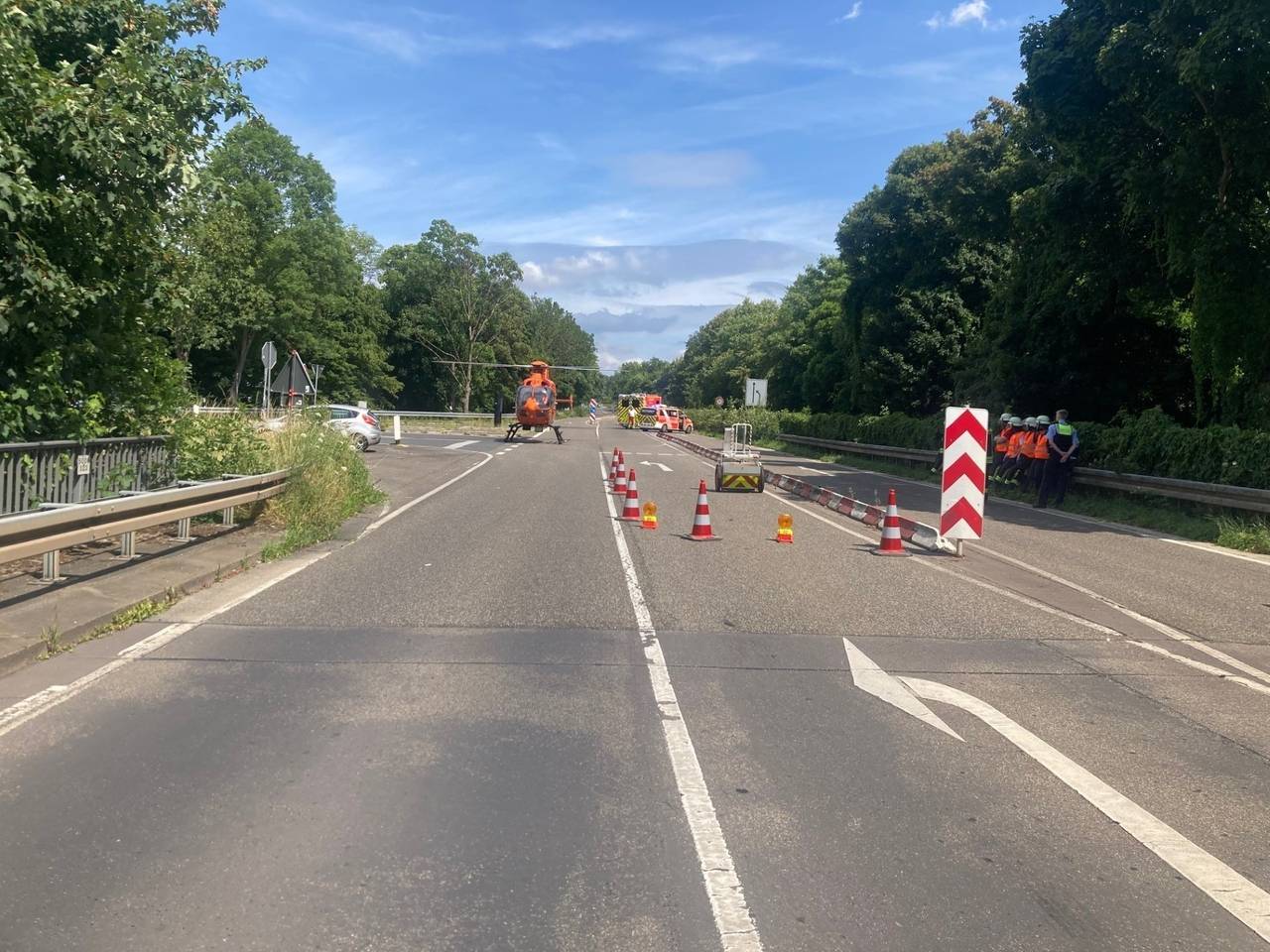 Kerpen: Rettungshubschrauber auf L163 im Einsatz