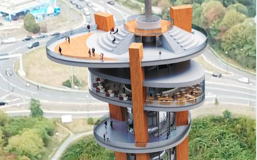 Der Rheinlandturm aus Holz soll höher als der Kölner Dom werden und auch wegen seiner ungewöhnlichen Bauweise eine weit sichtbare Landmarke in der Region werden. Geplant sind Aussichtsplattformen, eine Riesen-Rutsche und gastronomische Betriebe. Aber auch ein Kletterpark und eine Sternwarte seien im Gespräch.