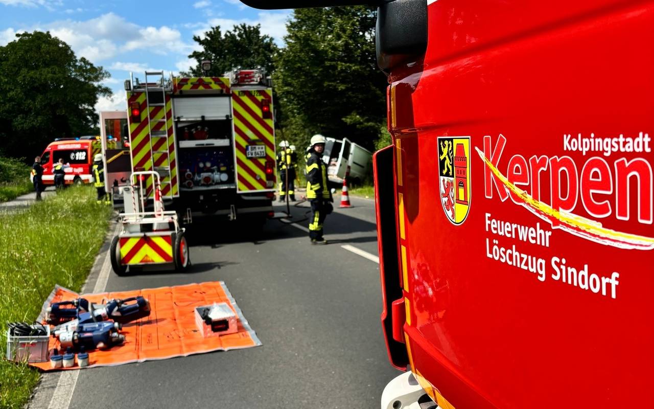 Kurz vor Sindorf kam der Transporter aus noch ungeklärter Ursache in einer langgezogenen Rechtskurve nach links von der Fahrbahn ab. Hier krachte der Wagen gegen einen Baum. Durch die Wucht des Aufpralls verformte sich der Wagen so sehr, sodass Feuerwehrleute den Mann befreien mussten. Er wurde schwer verletzt in eine Klinik geflogen. Der Autofahrer ist noch nicht abschließend identifiziert, hieß es am Abend von der Polizei.