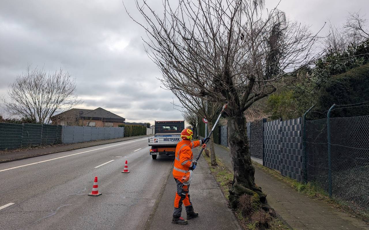 In Bedburg-Kaster müssen auf der St. Rochus-Straße insgesamt 14 Kirschbäume gefällt weden. Ein Pilzbefall hat die Bäume so stark beschädigt, dass sie zur Gefahr für Passanten und den Verkehr geworden sind. Die Stadt plant, im Herbst Ersatz zu pflanzen.