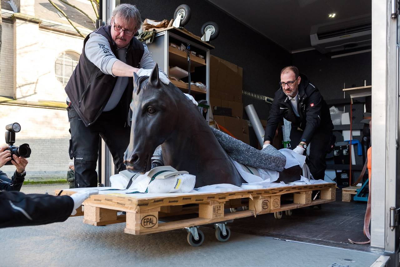 Das fast zwei Meter große Exponat konnte nicht mit Aufzügen befördert werden. Stattdessen musste das Pferd ausgepackt und mit speziellen Vorrichtungen über das Treppenhaus transportiert werden – eine Millimeterarbeit. In der alten Ausstellung gehörte das Pferd laut Stadt zu den Publikumslieblingen. Es stand um 1500 im Kölner Palast einer einflussreichen Familie am Neumarkt zur Präsentation eines kostbaren Rossharnischs, der bei Turnieren verwendet wurde. Es ist eines der ältesten erhaltenen Rüstkammerpferde europaweit.