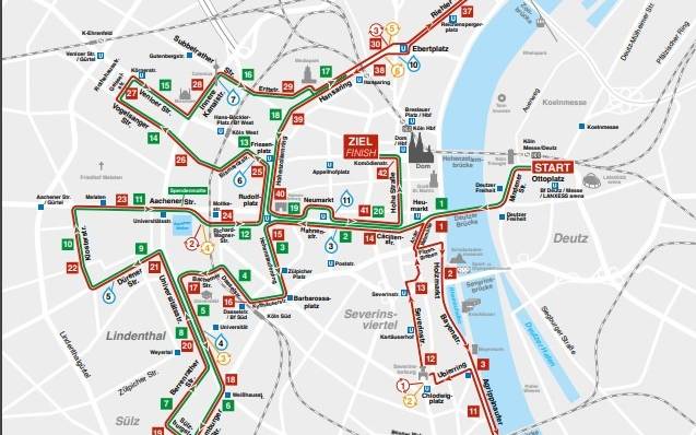Die Strecke beginnt in Deutz und führt die Läufer am Rhein entlang durch Sülz, Lindenthal, Ehrenfeld und Nippes bis zum Ziel am Kölner Dom.
