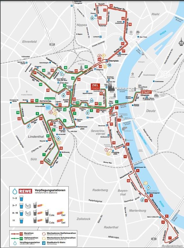 Am Sonntag wird Köln wieder zur großen Laufstrecke für über 30.000 Sportler – beim Marathon, Halbmarathon, Staffellauf und Schulmarathon. Der Halbmarathon startet um 9.00 Uhr, die Marathon-Läufer gehen dann um 10.30 Uhr an den Start. Dieses Jahr wollen 7.600 Läufer die gut 42 Kilometer absolvieren, mehr als 18.000 laufen die Halbmarathon-Distanz. Dazu kommt noch der Staffel- und Schulmarathon.