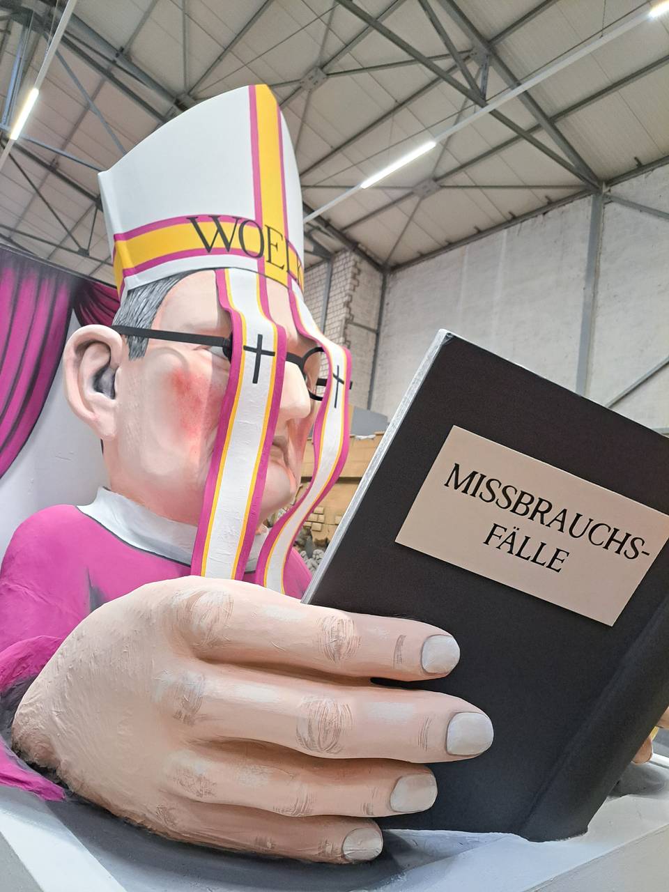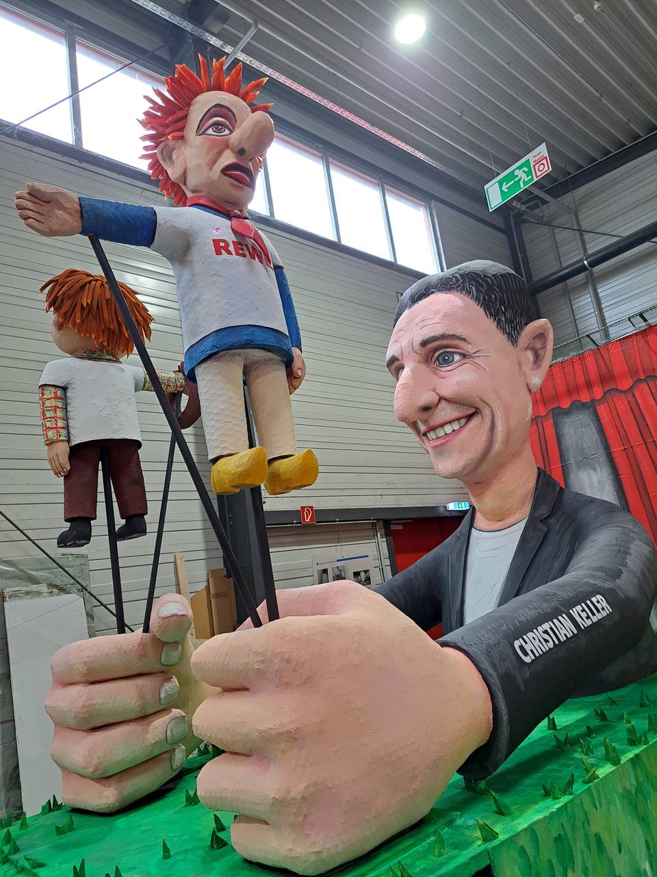 Zwei Tage vor dem Start in den Straßenkarneval hat das Festkomitee Kölner Karneval die Persiflagewagen für den Rosenmontagszug vorgestellt. Beim Richtfest konnten alle 24 Wagen angeschaut werden.