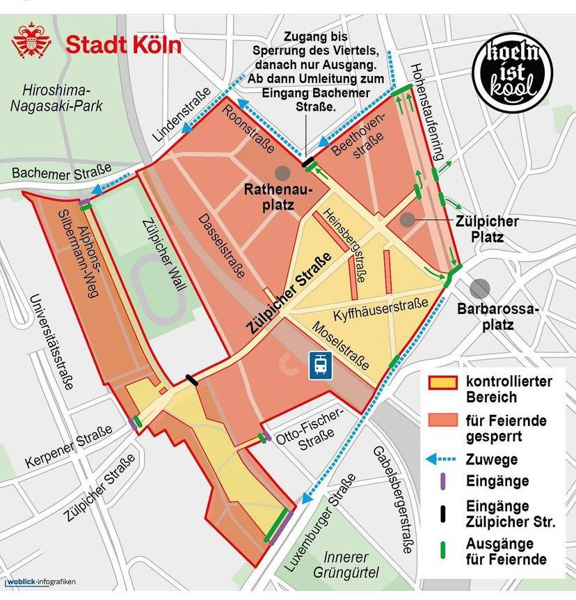 Auch die Kölner Feuerwehr stellt sich auf mehr Einsätze ein. Am Neumarkt wird deshalb eine zusätzliche Rettungswache aufgebaut und es seien mehr Frauen und Männer im Dienst als sonst, so die Feuerwehr. Um im Ernstfall auch in den engen Partyhotspots den Überblick zu behalten, setzt die Feuerwehr wieder Fußstreifen, sogenannte Wandelposten ein. Sie sollen im Ernstfall helfen die Lage zu überblicken und Rettungsfahrzeuge durch die Menge lotsen. Aber auch an den Hotspots sind Feuerwehr und der Rettungsdienst präsent. An verschiedenen Unfallhilfsstellen werden kleinere Verletzungen von Notärzten oder Sanitätern versorgt, so das die Feuerwehr nicht jedesmal ausrücken muss. Auch in diesem Jahr werden wieder hunderte Ehrenamtler aus ganz Deutschland den Rettungsdienst an diesen Unfallhilfsstellen unterstützen und die Jecken behandeln. HIER gibt es eine Übersicht über alle Sperrungen und die Standorte der Hilfsstellen.
