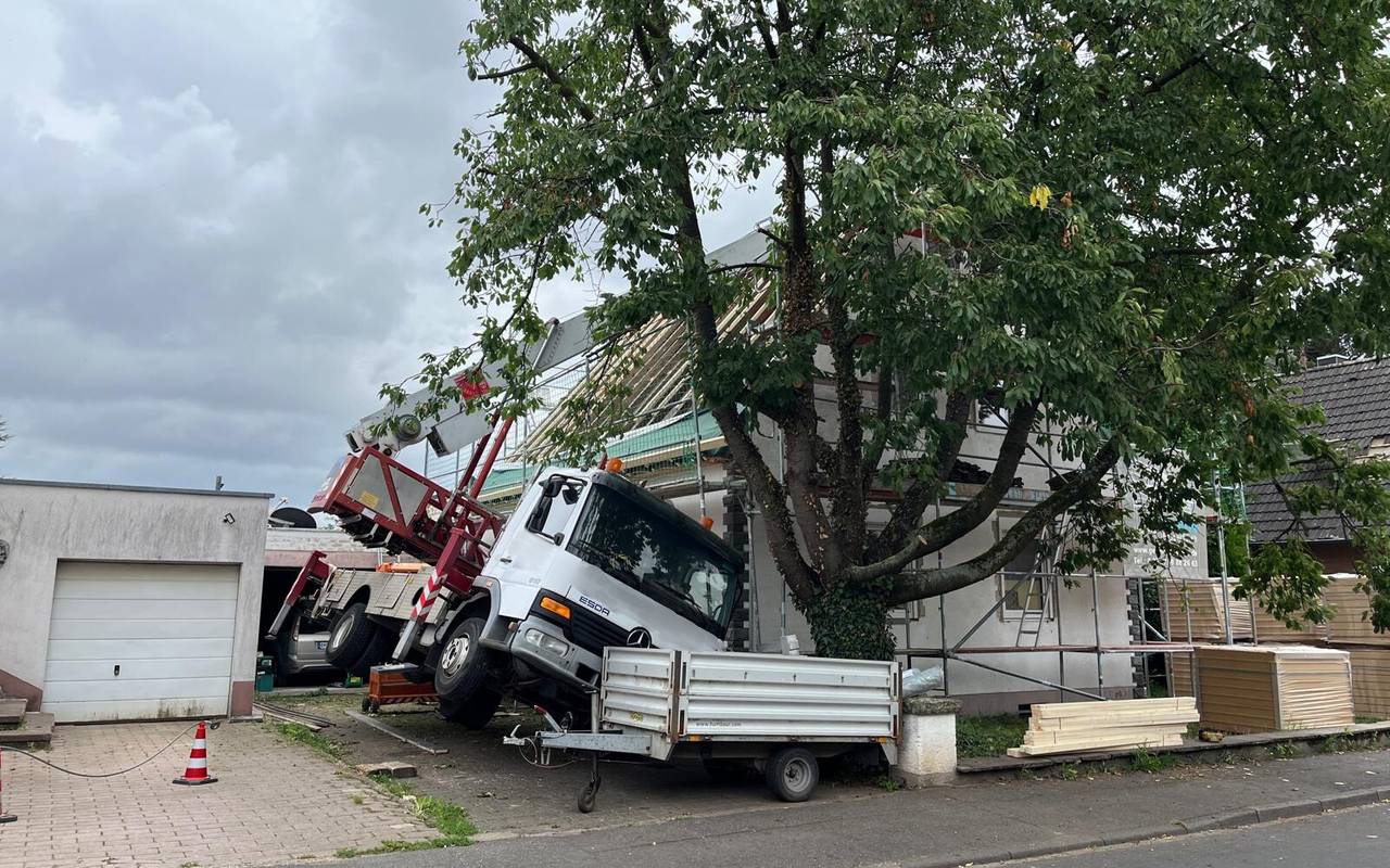 Ein Baukran ist in Pulheim auf zwei Wohnhäuser gestürzt. Verletzt wurde aber niemand.