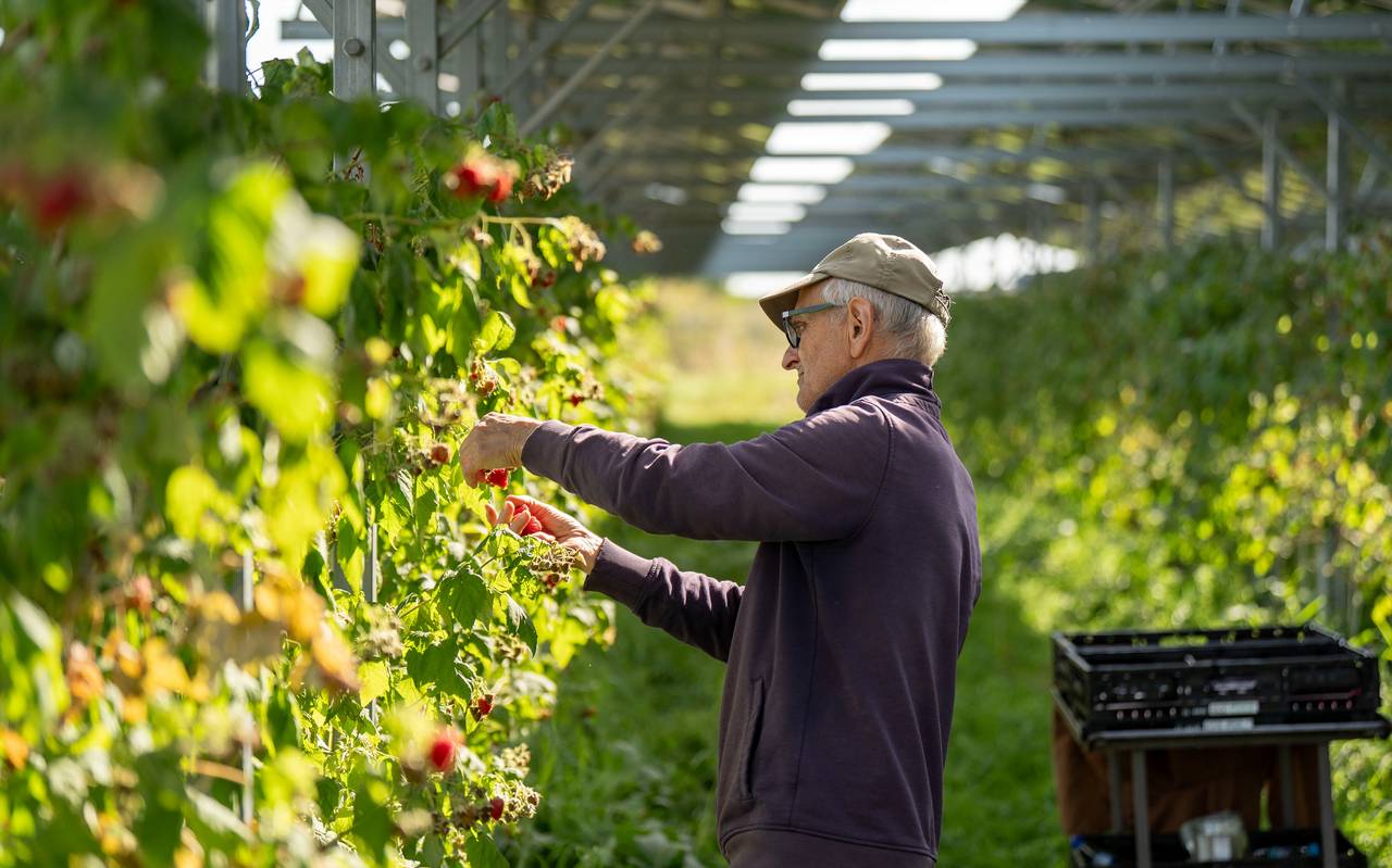Die dritte Variante nutzt Solarmodule, die wie ein Dach angebracht sind. Darunter wachsen erfolgreich Himbeeren. Der Anbau im Topf und unter den Modulen ermöglicht ein gesundes Pflanzenwachstum, qualitativ hochwertige Erträge und besser planbare Erntezeiten. Zudem bieten die Solarmodule Schutz vor Unwettern und extremer Sonneneinstrahlung – ein Vorteil, der auch von den Erntehelfern geschätzt wird.
