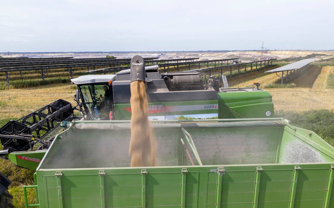 Auf einer Rekultivierungsfläche wurden mehr als 6.000 Solarmodule installiert, die grünen Strom für über tausend Haushalte erzeugen. Gleichzeitig bauen Landwirte aus der Region dort Weizen, Gerste und Himbeeren an. Dabei wurden drei verschiedene Konzepte getestet: