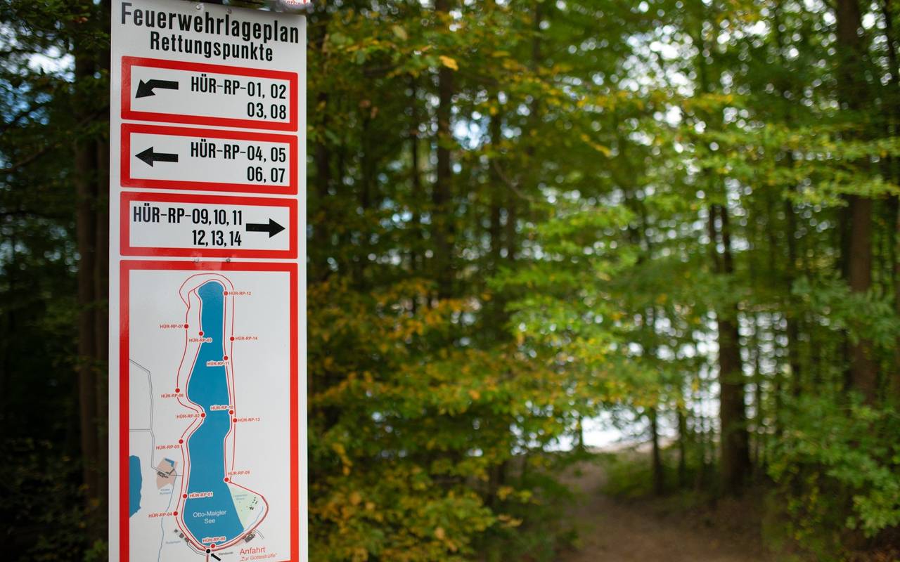 Bei einem Notfall können Betroffene oder Ersthelfer diesen Punkt den Rettungskräften nennen, damit diese den Unfallort schnell finden. Außerdem können die Schilder auch bei Waldbränden eine große Hilfe sein. Insgesamt wurden 14 Schilder rund um den See angebracht.