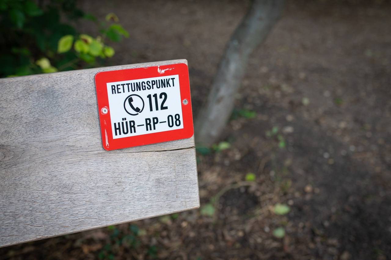 Rund um den Otto-Maigler-See sollen Rettungskräfte in Zukunft noch schneller Hilfe leisten können. Dazu hat die Stadt an Parkbänken am See Schilder aufgehangen. Jedes Schild markiert einen sogenannten Rettungspunkt – also einen Punkt im Wald, der mithilfe von Koordinaten eindeutig erfasst wurde.