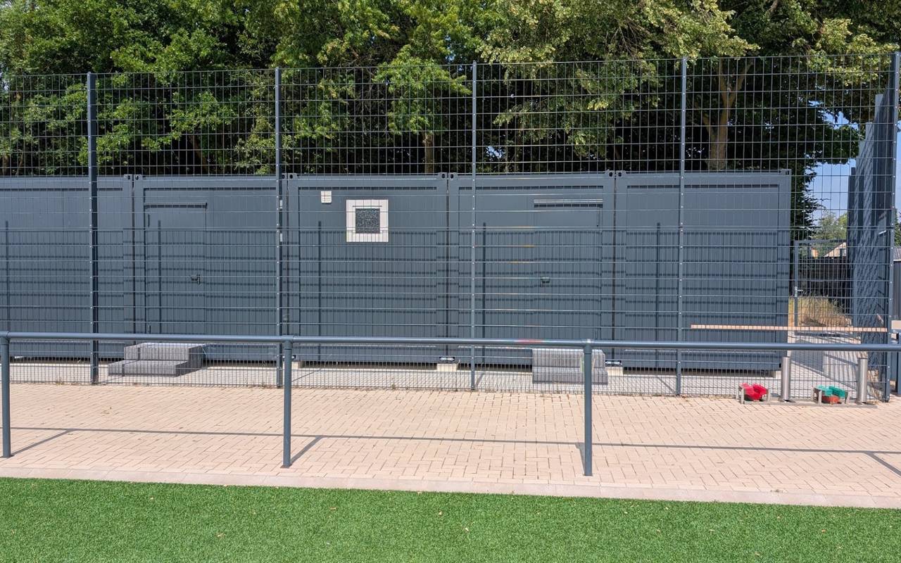 Neue Umkleidekabinen am Sportplatz in Bedburg Kirch-Grottenherten: Kürzere Wege und moderne Ausstattung für Sportler und Schiedsrichter.