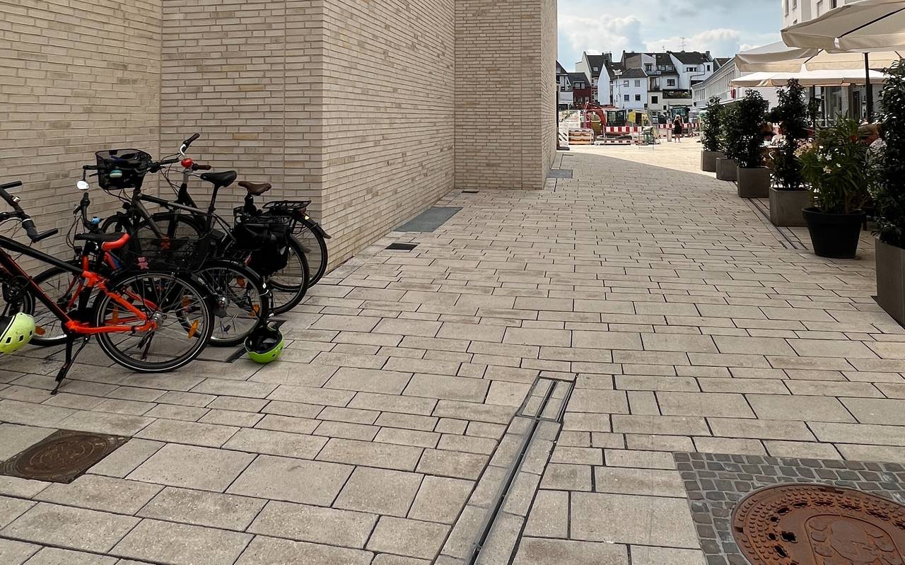 Der Janshof in Brühl ist umgestaltet: Sitzmöglichkeiten, ein Wassertisch und ein Trinkwasserbrunnen ersetzen Parkplätze. Radfahrer und Sharing-Nutzer profitieren von neuen Stellplätzen. Am Mittwoch wird der Janshof offiziell eröffnet.