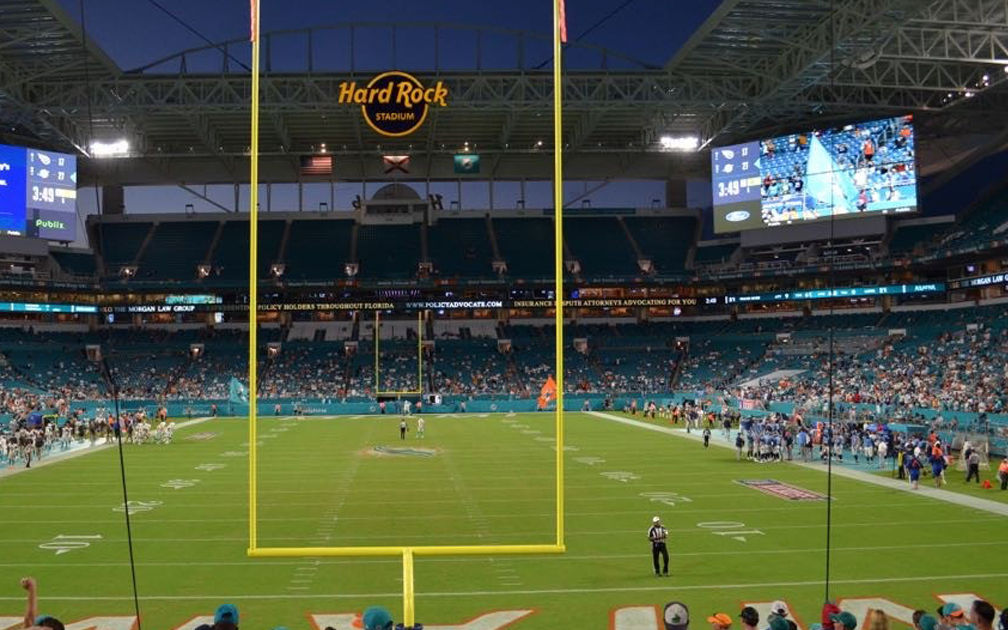 Für die Offenses geht es darum, durch Raumgewinne Punkte zu erzielen - sogenannte Touchdowns. Das geht entweder per Pass, oder per Lauf mit dem Football. Das Spielfeld in allen NFL-Stadien ist 100 Yards lang (ca. 91 Meter). An beiden Enden des Spielfelds befinden sich die Endzonen, in denen jeweils ein stimmgabelförmiges Tor (siehe Bild) steht. Das Ziel der Offense ist es, in die Endzone zu gelangen. Denn nur dann gibt es Punkte.