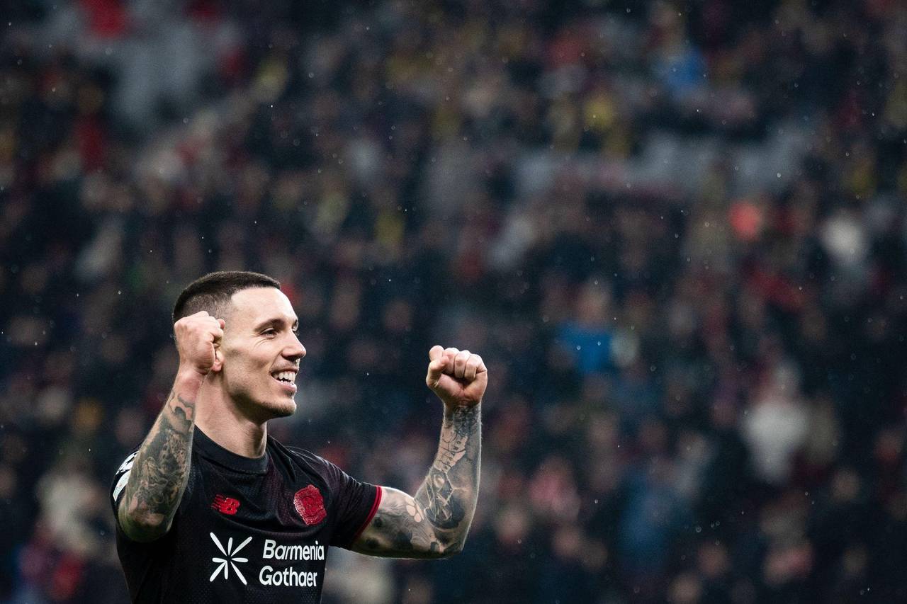 Bayer und Alejandro Grimaldo dürfen jubeln.© Marius Becker/dpa