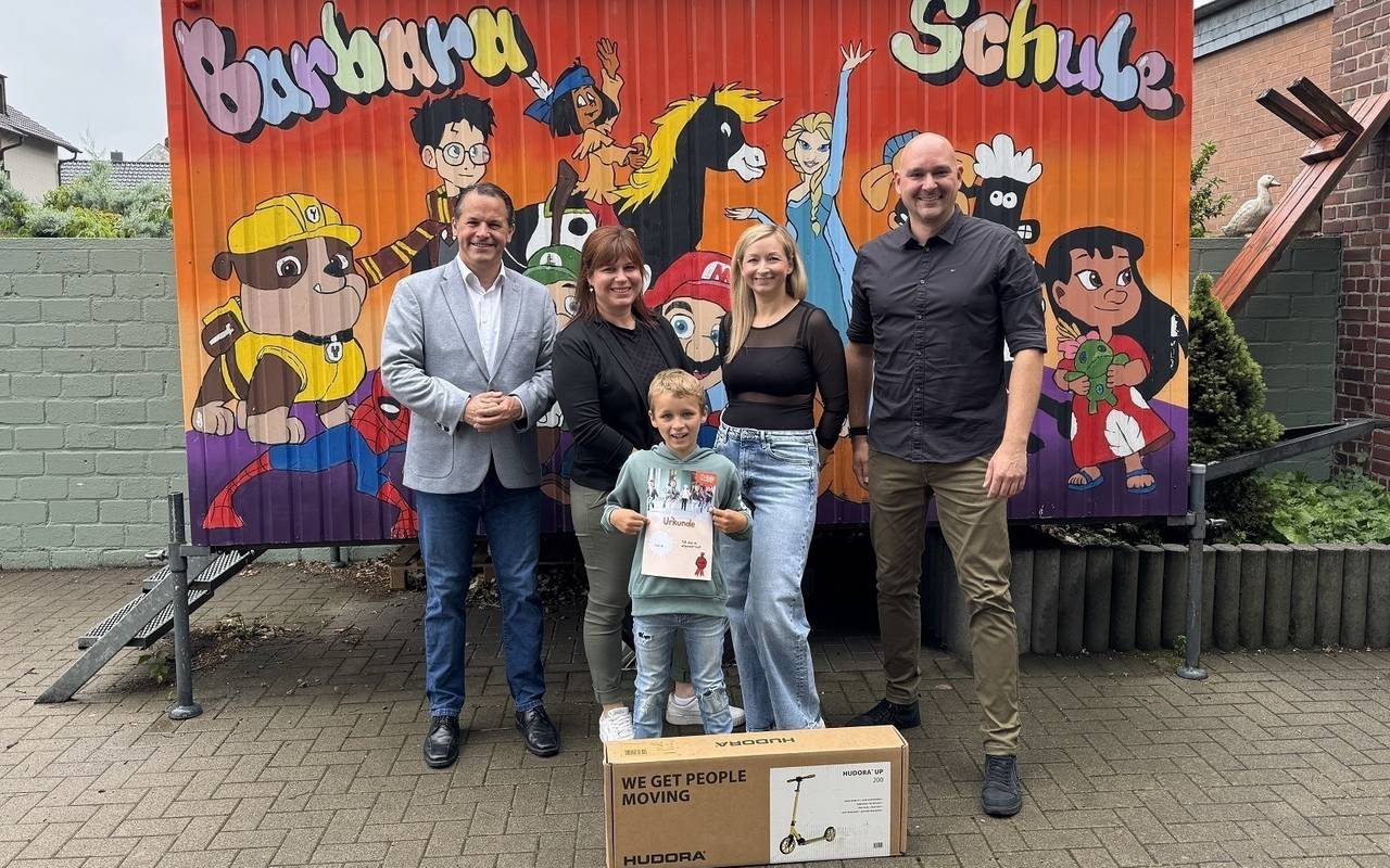Bundesweit haben 137.000 Kinder mitgemacht, und unter ihnen wurden tolle Preise verlost. Einer davon geht an einen Erstklässler der Barbaraschule – er hat für seinen Verzicht auf das Elterntaxi einen Tretroller gewonnen.