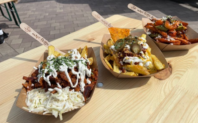 Ab und an kommt der Wagen nach Erftstadt. Über Instagram oder Facebook könnt ihr immer nachschauen. Und dann lohnt sich ein Abstecher um einmal die Fritten „mit was drauf“ zu essen. Onkel Schnibbel ist der Klassiker mit gegrilltem Eifelschwein und Krautsalat. Onkel Icke ist die Fritte mit Currywurst. Oder vielleicht Onkel Tommy mit Champignons in Rahmsauce? Es gibt immer wieder neue Gerichte. Aber eines hat sich nie verändert: die Freude am Fritten machen und der Klatsch mit den Gästen. Ihr schafft es nicht nach Erftstadt? Dann bucht Onkel Fritts doch mal für ein Firmenevent bei euch oder eine private Feier. Gute Laune gibt es gratis dabei.