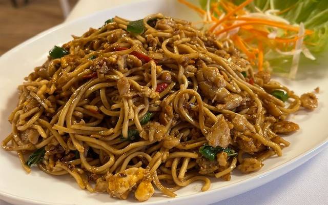 Das Betreiberpaar Jinthana und Werner hat eine perfekte Aufteilung. Sie kümmert sich um die Bestellungen und redet mit dem thailändischen Koch. Er ist hingegen die rheinische Frohnatur, der gerne mal mit den Gästen quatscht. So lernt Karin von ihm, dass die Käsebällchen von einem Thai in München erfunden wurden, dass man in Thailand mit Löffel und Gabel isst und frühere kein Rind gegessen wurde, weil man sagte „Tiere, die dir helfen deine Nahrung sicherzustellen, isst man nicht“ und der Büffel spielt eine wichtige Rolle beim Reisanbau. Alle Saucen werden selber gemacht, auch der Teig für Sommerrollen wird selber gemacht. Es gibt also keine Fertigprodukte. 2 Chili ist schon außerordentlich scharf und 1 Chili dürfte den Meisten, die gerne scharf essen, reichen. Es gibt die üblichen thailändischen Gerichte auf der Karte: die gebratenen Nudel- und Reisgerichte, viele Currygerichte und auch die Suppen mit den vielen Kräutern. Chef Werner sagt, dass thailändisches Essen ein Lebensgefühl ist für ihn. Gesund und immer mit einen Lächeln verbunden. Bestellt herzliche Grüße von Radio Erft oder Erftgehtessen