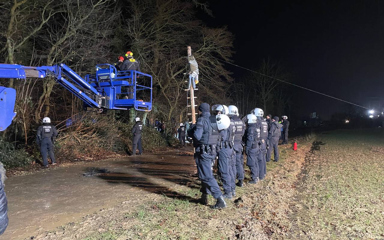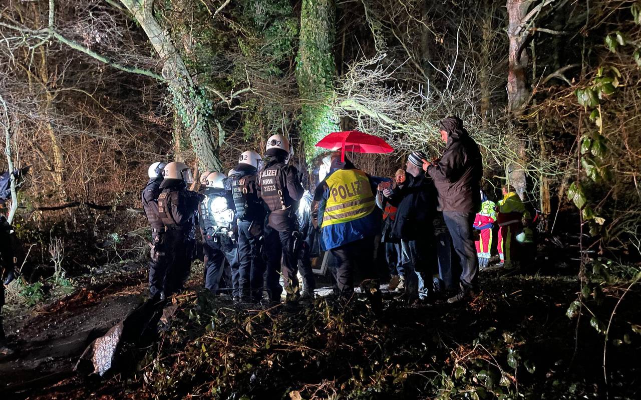 Die Polizei hat die Ermittlungen aufgenommen und schützt die Aufräumarbeiten von RWE. Auch die Bereitschaftspolizei wurde dafür hinzugezogen. RWE-Mitarbeiter beseitigten die Barrikaden mit schwerem Gerät, sagte ein Polizeisprecher. Außerdem mussten die Beamten einen Aktivisten von einem sogenannten "Monopod" herunterholen. Die Person saß laut dem Sprecher auf einem Baumstamm, der in den Boden eingegraben worden sei. Der Mann wurde in Gewahrsam genommen, um seine Identität zu klären. Laut Polizei gibt es bisher keine konkreten Hinweise darauf, dass die Umweltschützer der Mahnwache für die Straftaten der letzten Tage verantwortlich sind.