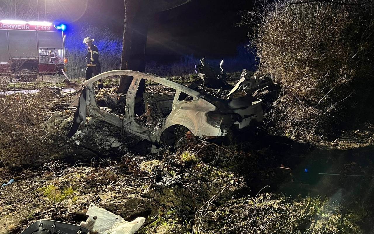 Nach ersten Ermittlungen war der Mann auf der L213 zwischen Bergheim-Glessen und Brauweiler in eine Linkskurve ins Schleudern geraten. Sein Tesla kam von der Straße ab, überschlug sich und prallte gegen den Baum. Dabei geriet das Elektroauto in Brand, heißt es von den Ermittlern. Als die Einsatzkräfte am Unfallort eintrafen, explodierten die im Fahrzeug verbauten Akkus. Der Fahrer des Wagen konnte nur noch tot geborgen werden.