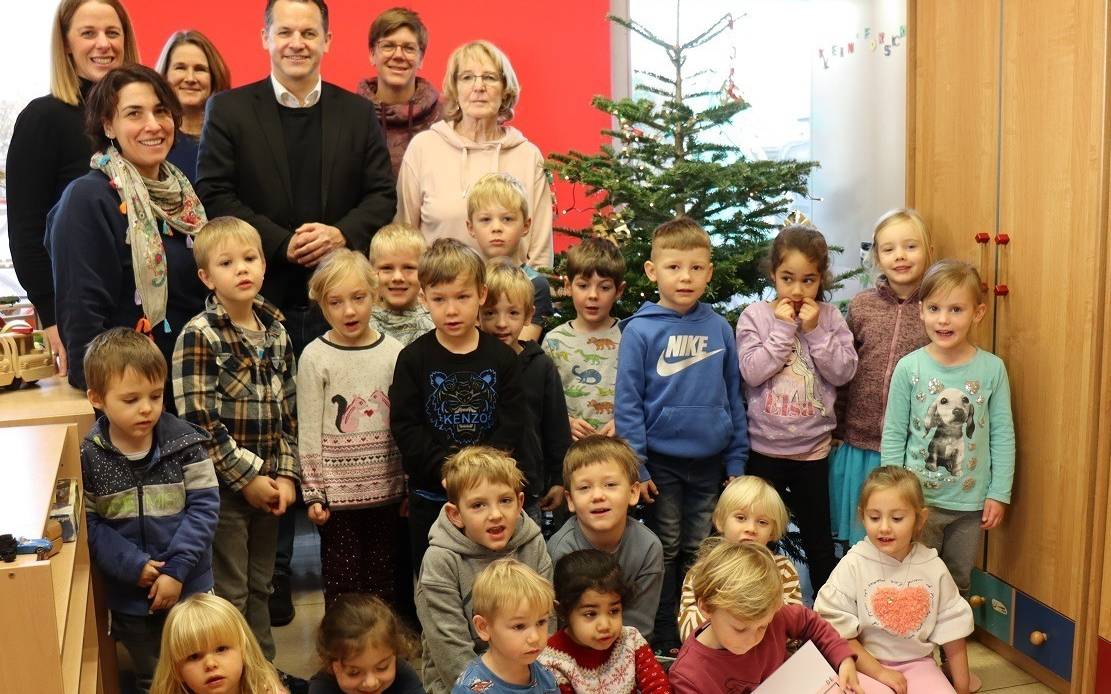 Über 1.300 Euro hat die Kindertagesstätte „Mach mit“ in Pulheim Sinnersdorf Bürgermeister Frank Keppeler überreicht. Das Geld fließt in den Fonds „Cents für Pänz“, den die KG Blau-Weiß Sinnersdorf 1987 ins Leben gerufen hat.