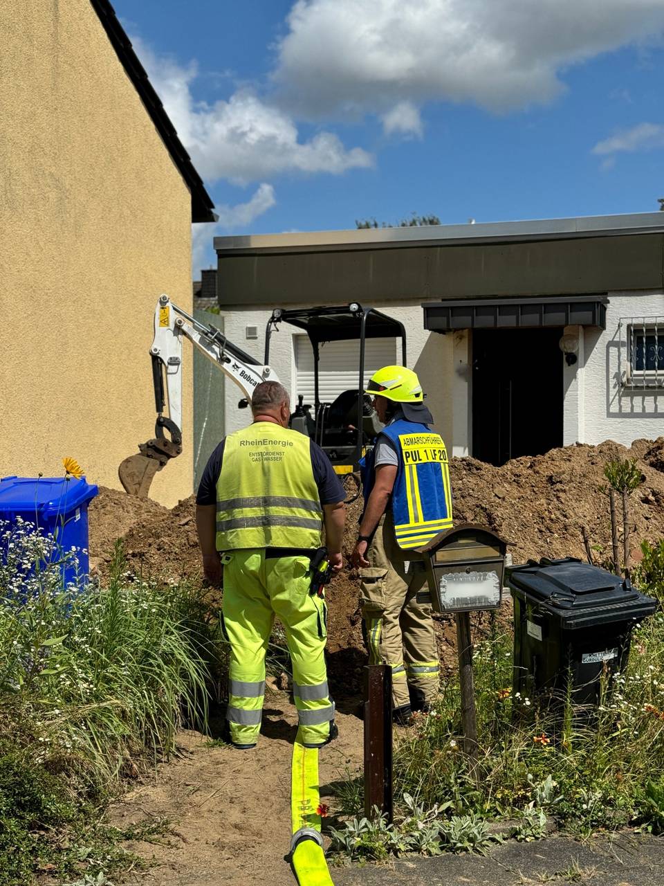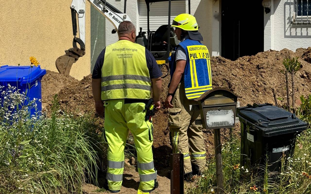 Pulheim: Baggerfahrer trifft Wasserleitung: Feuerwehreinsatz