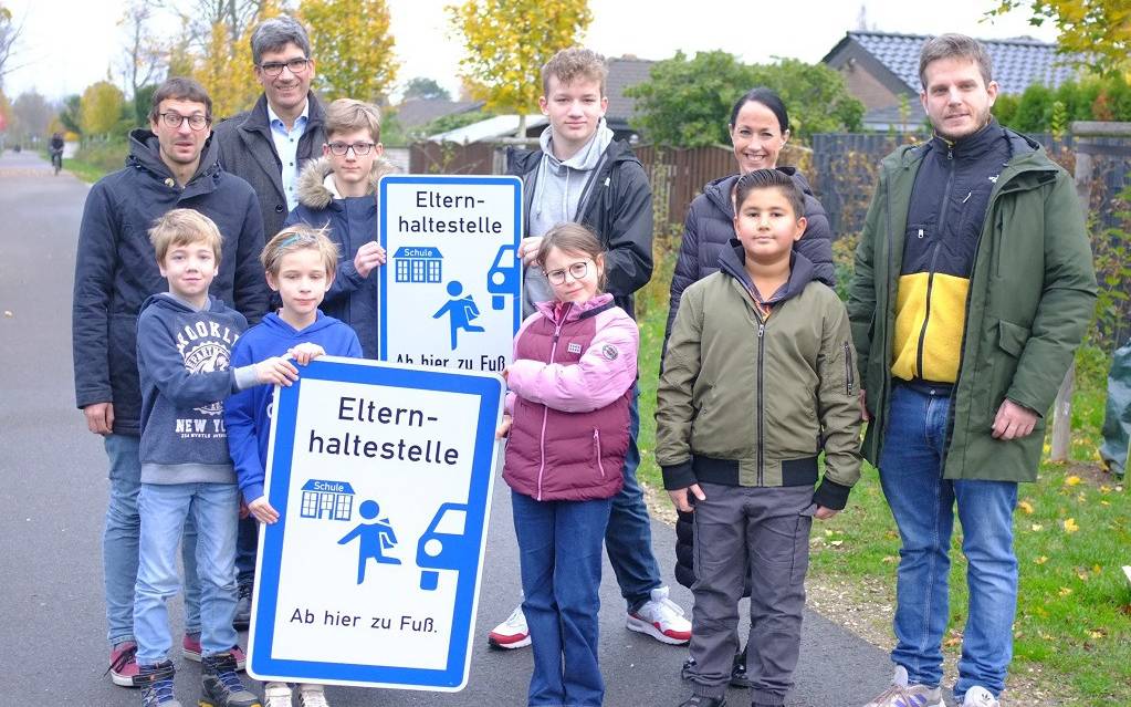 „Ab hier zu Fuß“ - heißt es bald am Pulheimer Schulzentrum. Ab dem 11. Dezember gibt es auf dem Parkplatz der St. Sebastianus Schützenbruderschaft eine „Elternhaltestelle“.