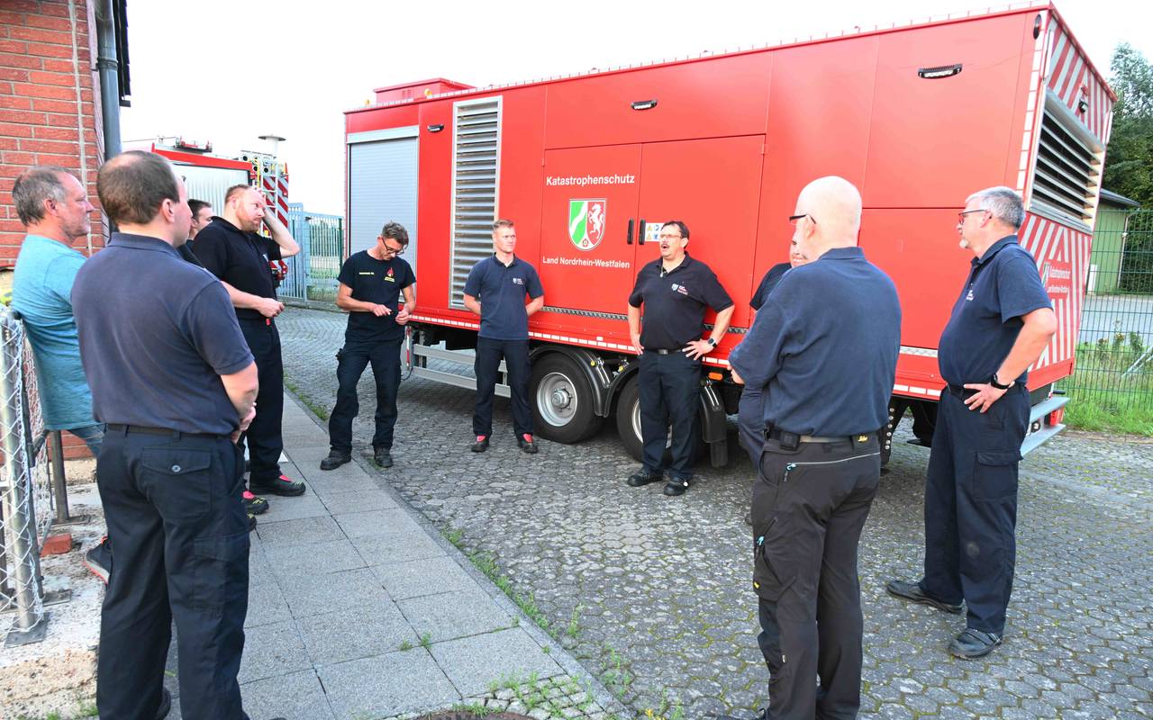 Er ist einer von 25, die der Katastrophenschutz des Landes zur Verfügung stellt und ist dauerhaft in Stommeln stationiert. Ein 25-köpfiges Team aus allen Pulheimer Löschzügen hat sich als Team speziell dafür gebildet und jetzt den Ernstfall geprobt. Dafür wurde eine Pumpstation, die Abwasser und Oberflächenwasser von zwei Stadtteilen aufnimmt und an die Zentralkläranlage in Sinnersdorf weiterleitet, vom öffentlichen Stromnetz getrennt und mit dem zehn Tonnen schweren Notstromanhänger weiter betrieben. Aufgabe war, die Hochleistungspumpen der Station in einem störungsfreien Betrieb zu halten. Und das habe reibungslos geklappt, so die Feuerwehr im Nachgang.