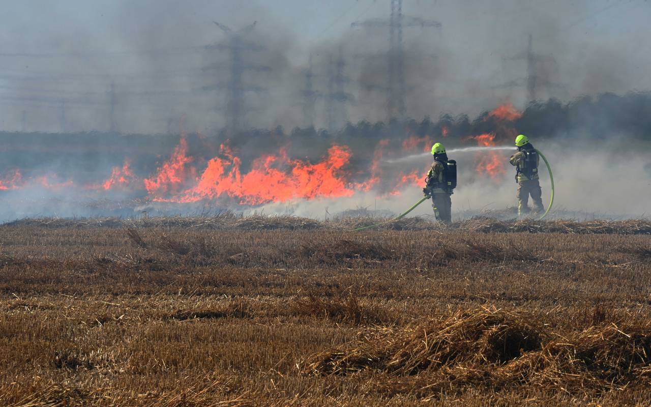 AAuf der Bergheimer Straße in Pulheim hat es am Abend ab 18 Uhr einen großen Feuerwehreinsatz gegeben. Dort brannten etwa 20.000 Quadratmeter Stoppelfeld und daneben rund 40 Heuballen sowie die Maschine, die die Ballen gepresst hat.