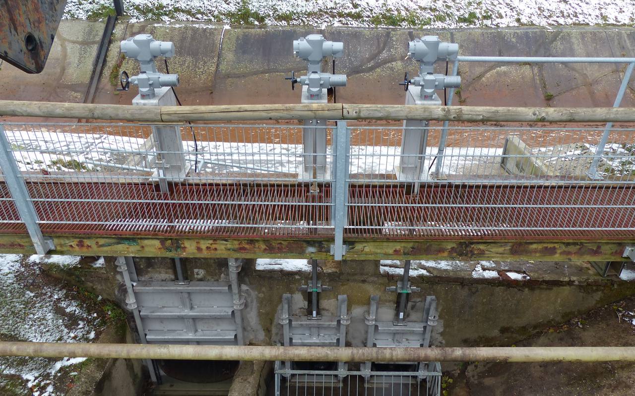 Laut Bachverband wurden drei rund 60 Jahre alte und undicht gewordene Schieber durch Neue ersetzt. Jetzt fehlen nur noch die Elektroanschlüsse, sie sollen in der nächsten Woche fertig sein. Die Schieber können zum Beispiel bei Öl-Alarm geschlossen werden, dann fließt kein Wasser mehr vom Pulheimer Bach in Richtung Große Laache. Und ein Ölteppich kann so aufgefangen und entsorgt werden. Die Gesamtkosten von rund 70.000 Euro teilen sich der