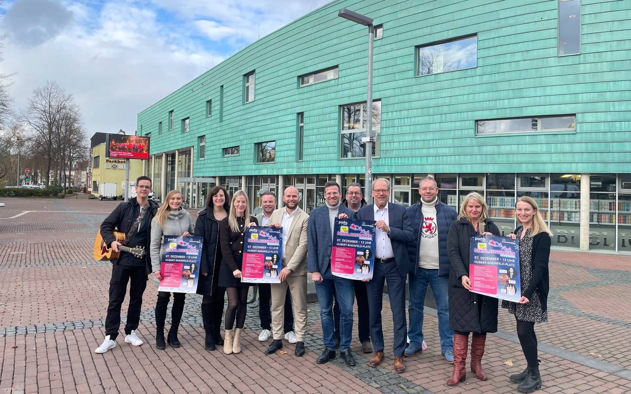 Die Vorbereitungen für das vierte Radio-Erft-Nikolaus-Singen in Bergheim laufen auf Hochtouren. Am Zweiten Advent, dem 07. Dezember 2025, treten die Funky Marys, die Friends of Music Oberaußem und Sebastian Tribowski vor dem Medio in der Bergheimer Innenstadt auf. Nur die letzten Aufbauarbeiten wenige Tage vor der Veranstaltung stehen noch aus.