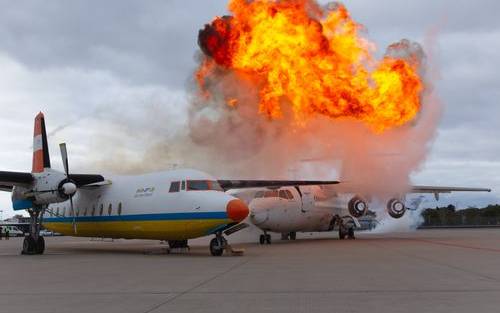 Krach und viel Rauch. Am Flughafen Köln Bonn gibt es am Samstag eine Notfallübung. Auf einem Rollfeld wird der Crash zweier Passagierflugzeuge simuliert und Helfer trainieren dann die Rettungsarbeiten.
