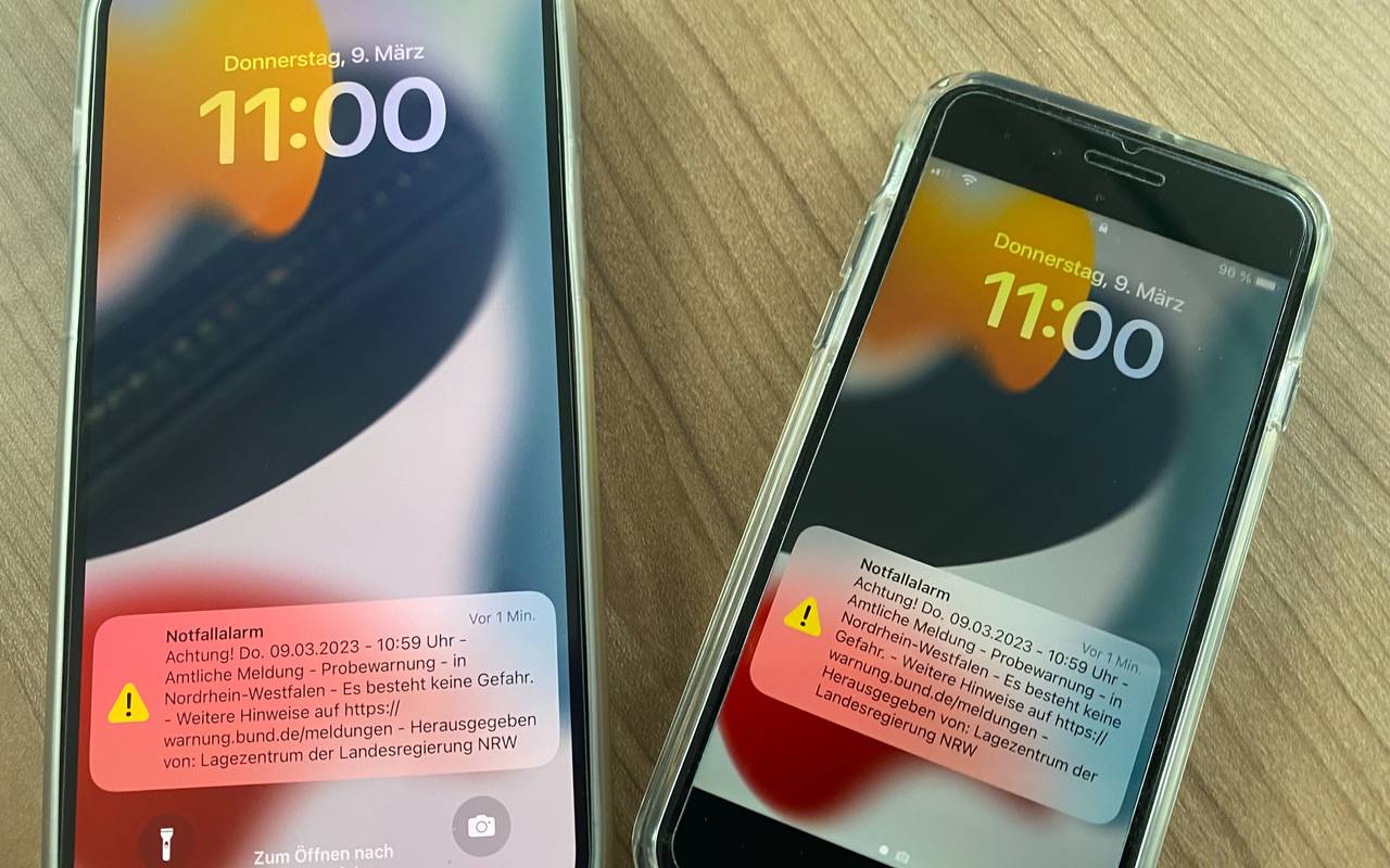 Neben den Sirenen sollten auch die Warnapps „NINA“ und „KATWARN“ per Push-Meldung auslösen. Außerdem kam der neue Warnkanal Cell Broadcast zum Einsatz – er warnt mit Nachrichten und einem Alarmton auf den Handys. Neu war, dass auch auf digitalen Werbetafeln informiert werden sollte.