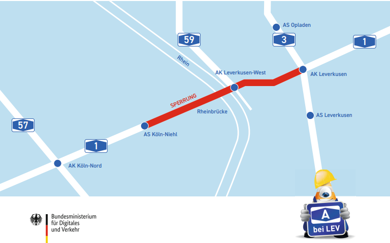 Region: Sperrung der A1 Rheinbrücke beginnt