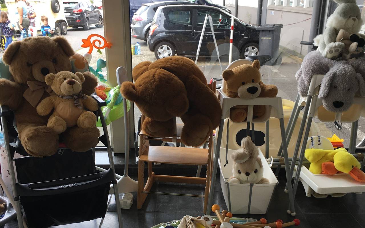 Lebensmittel, Kleidung, Kinderspielzeug – das können Betroffene der Flutkatastrophe in Erftstadt-Lechenich bekommen. Auf dem Gelände eines alten Autohauses haben Ehrenamtliche gemeinsam mit der Stadt ein Nothilfezentrum aufgebaut. So langsam kommen auch die ersten Betroffenen der Flutkatastrophe, um sich mit dem Nötigsten zu versorgen. Das Nothilfezentrum am Bonner Ring 57 ist täglich von 8 bis 20 Uhr geöffnet. Wer Spenden hat, kann sie in diesem Zeitraum abgeben. Kleidung oder Plüschtiere nehmen die Ehrenamtler aber vorerst nicht mehr an, davon sei genügend da. Dringend gebraucht werden im Moment Bautrockner und alles mögliche zum Putzen und Waschen, vom Schrubber über Gummihandschuhe bis hin zum Waschmittel.