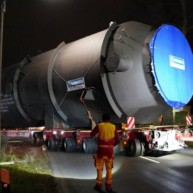 Der Wandel des Shell Energy and Chemicals Park Rheinland zu einem Standort mit weniger CO2-Emissionen wird immer mehr sichtbar. In den letzten Tagen sind zwei weiter riesige Bauteile in Wesseling angekommen. Die beiden über 50 und über 30 Meter hohen Kolonnen sind Teil der neuen Grundöl-Anlage. Sie wurden per Schiff in Wesseling angelandet. Der über 50 Meter hohe Turm wird dann künftig die neue Silhouette prägen, heißt es. Die neue Grundöl-Anlage soll bis 2028 fertig sein und in Betrieb gehen. Dort kommt ein Elektroheizer zum Einsatz, der mit Strom aus erneuerbarer Energie betrieben werden soll – der erste seiner Art in der petrochemischen Industrie.