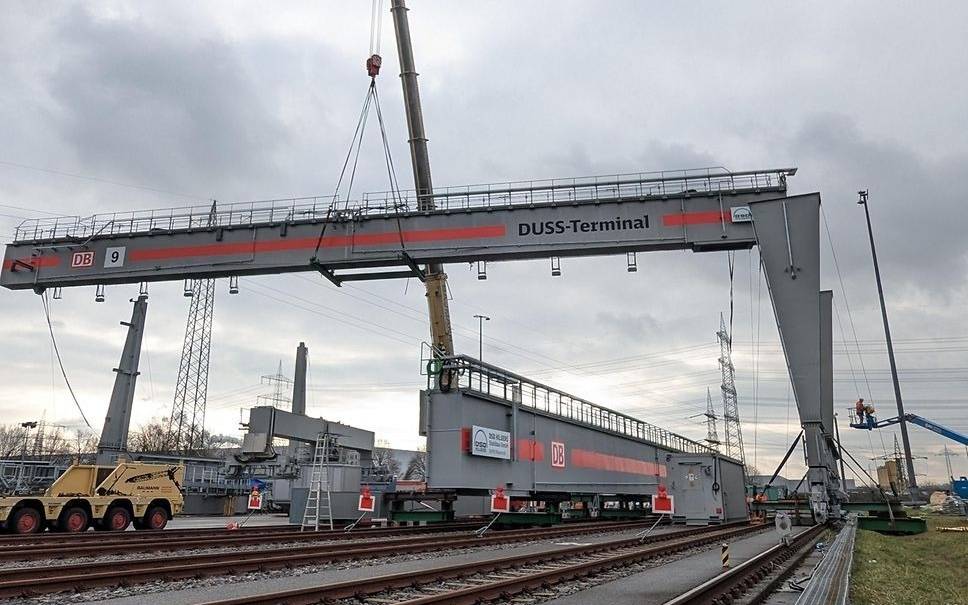 Am Containerterminal Köln-Eifeltor ist ein über 50 Meter breiter Kran montiert worden. Er kann Container, Wechselbehälter und ganze Lkw-Auflieger umweltfreundlich von der Straße auf die Schiene verladen.