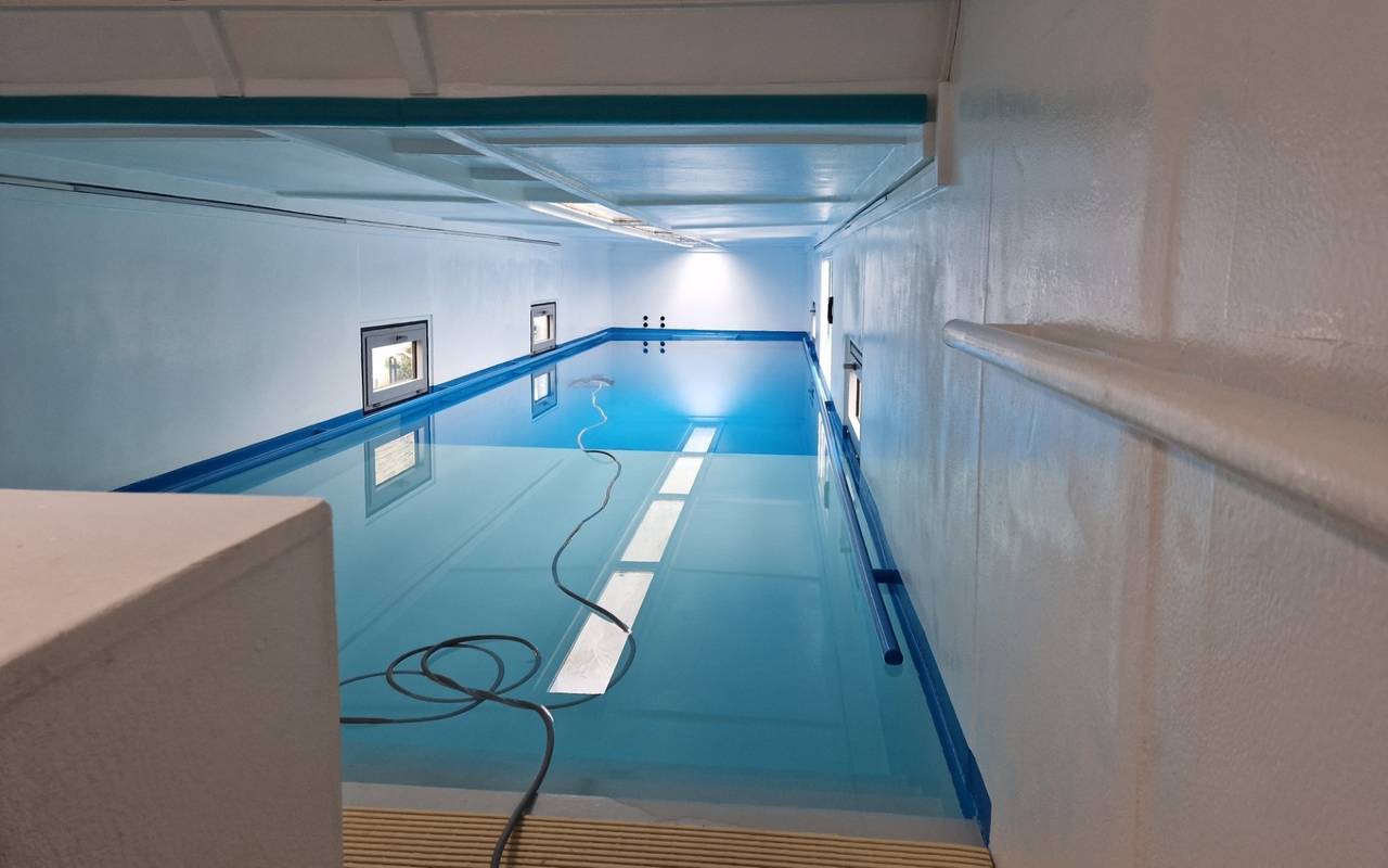 Der Schwimmcontainer wird bis Anfang Juni an der Schule stehen und wird Mittwoch (14.05.) feierlich eröffnet. Vorrangig nutzen ihn zwei Grundschulen, und es gibt zusätzlich einen reservierten Zeitslot für Kindertagesstätten.