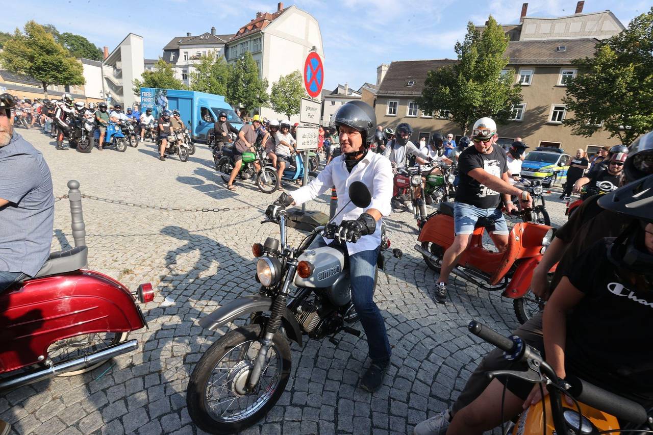 AfD-Chef Björn Höcke schwärmt von der Simson und nutzte sie im Wahlkampf 2024. (Archivbild)© Bodo Schackow/dpa