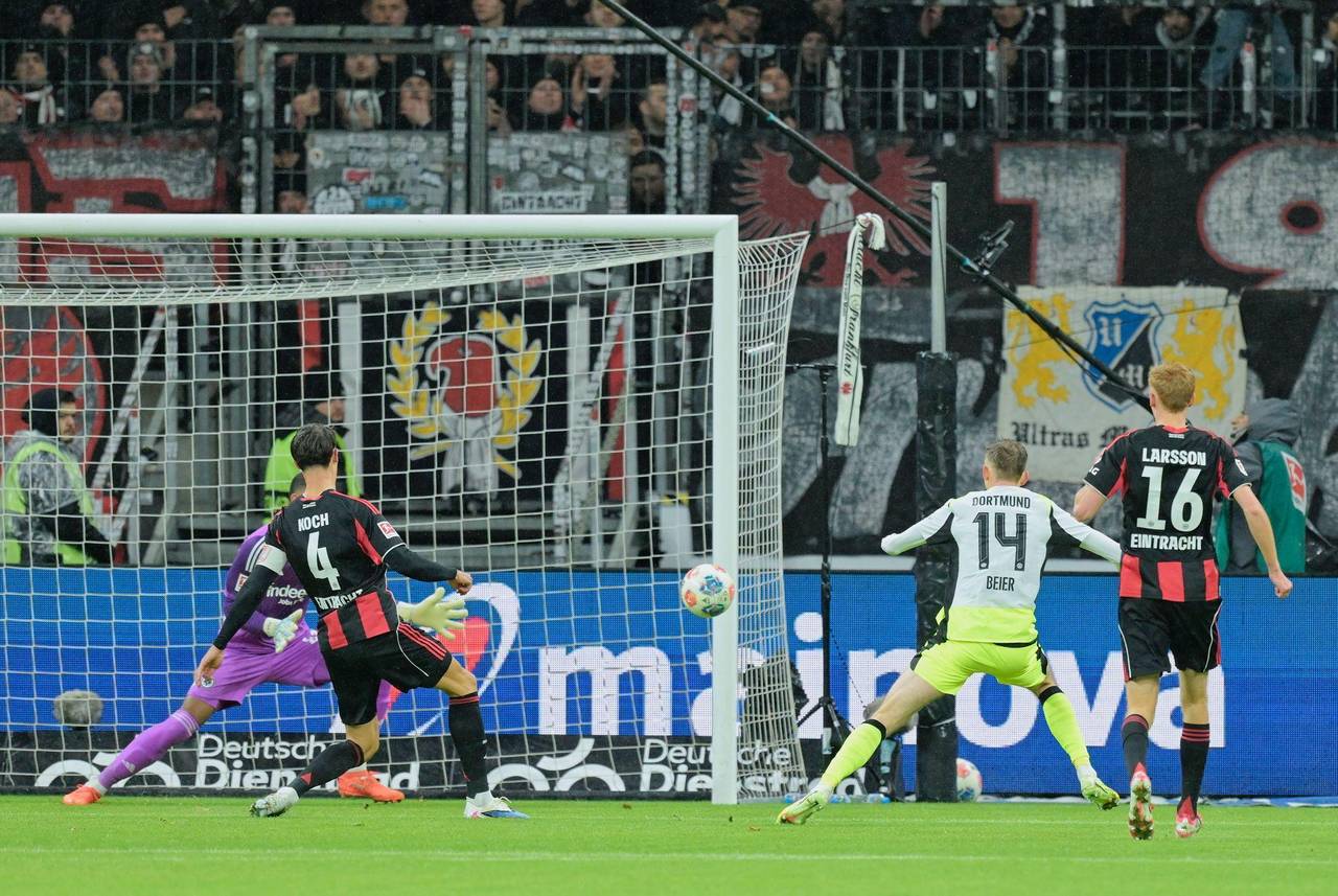 Doch als Kobel erstmals eingreifen musste, hatte der BVB-Angriff bereits geliefert. Auf Vorlage des starken Außenbahnspielers Julian Ryerson vollendete Nationalspieler Beier in der Mitte zur frühen 1:0-Führung - sowohl Assistgeber wie Torschütze wurden von der Eintracht-Defensive alleine gelassen und nutzten dies gnadenlos.