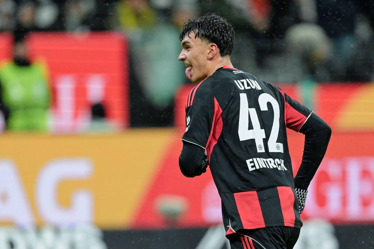 Doch die Eintracht ließ sich im ausverkauften Stadion, das laut Mitteilung vom Freitag auch bis zum Jahr 2035 Deutsche Bank Park heißen soll, nicht verunsichern. Stattdessen griff das Toppmöller-Team an, häufig befeuert von Mittelfeldmotor Uzun. Den Flachschuss des Youngsters kurz nach dem Gegentreffer entschärfte Kobel ohne größere Probleme (17.).