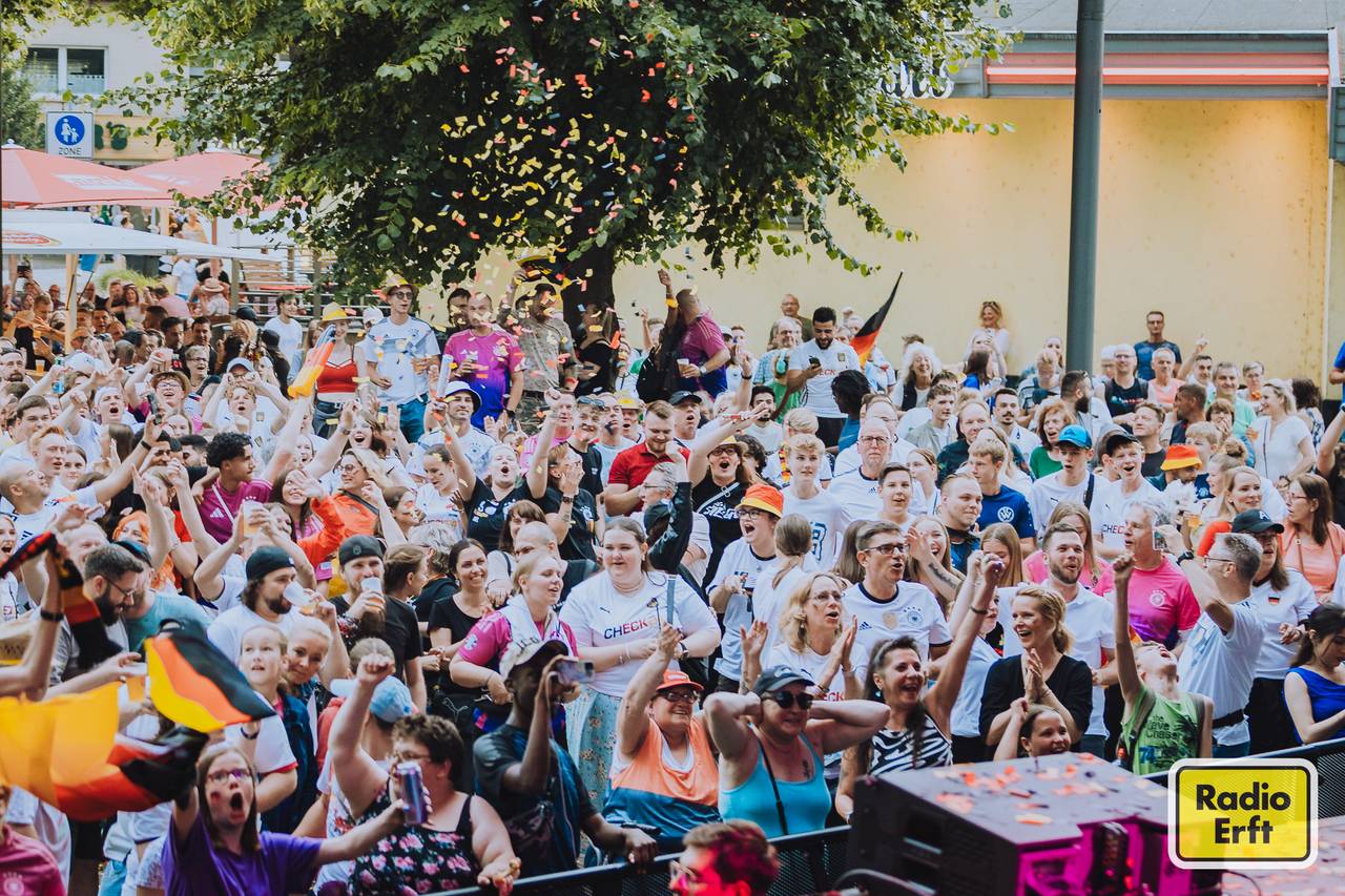 Tausende bestens gelaunte Menschen haben in Bergheim am Samstag Summer in the City 2024 gefeiert - bei schönstem Wetter, zumindest bis zum Abend. Auch beim Public Viewing wurde der Sieg der deutschen Nationalmannschaft frenetisch gefeiert. Am Ende musste der Auftritt von Miljö wegen eines drohenden Unwetters verschoben werden. Die Band versprach aber, den Auftritt nachzuholen.